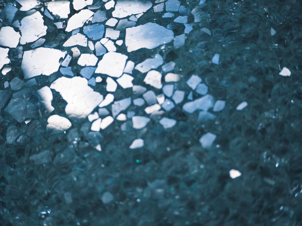 While walking in Bushwick, Brooklyn I discovered someone had smashed the local bus stop to pieces. The mounds of glittering glass inspired me to clean up for the community, rearrange them into something new. Memorializing its overlooked beauty. Since, I continue to pick up glass to protect our sidewalks.