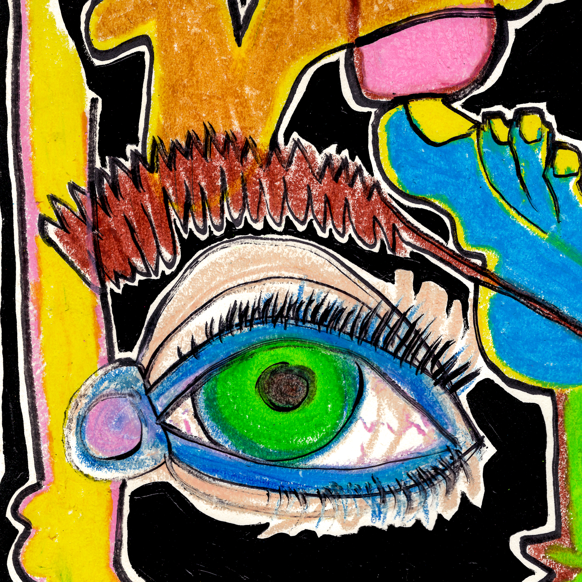 Sketched during a stormy day in lockdown, 2020, Partz resembles the importance of experimental expression. The goal was to draw away the turmoil felt a year later, considering what was felt across our society at the time, not being able to walk away from home.